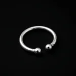 This minimal silver hoop nose ring features a sleek and clean design that highlights simplicity and modern style. Crafted with a smooth circular hoop and two polished ball ends, this piece offers a subtle yet stylish look.
