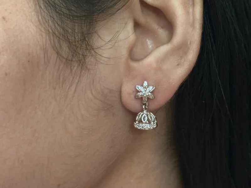Upgrade your everyday style with these beautifully crafted 925 silver floral jhumki earrings. Designed with a delicate flower-shaped stud and a subtle jhumki drop, this piece blends traditional charm with modern minimalism. The lightweight design ensures comfortable wear throughout the day, while the fine detailing adds just the right amount of sparkle. Whether you’re heading to work, a casual outing, or a small festive gathering, these earrings effortlessly enhance your look without being overpowering.