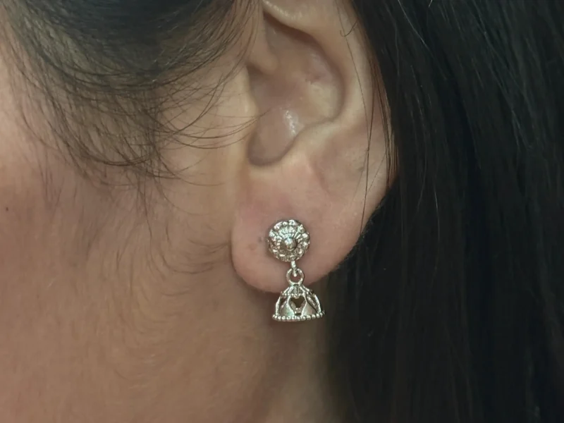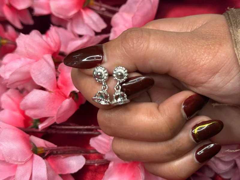 Add a soft and charming touch to your everyday look with these 925 silver heart detail jhumki earrings. Featuring a textured round stud paired with a delicate jhumki drop accented by a subtle heart motif, this design blends simplicity with a hint of emotion. Lightweight and easy to wear, these earrings are perfect for daily styling, whether you’re heading to work, college, or a casual outing. A versatile piece that brings understated elegance to any outfit.