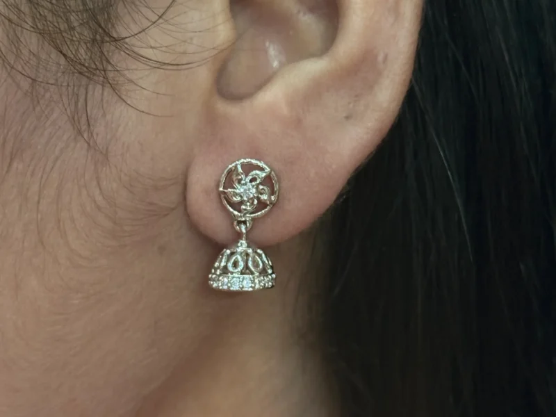 Enhance your everyday style with these 925 silver swirl floral jhumki earrings, designed to stand out with their unique circular pattern. The intricate swirl detailing adds a modern artistic touch, while the delicate jhumki drop brings in a hint of traditional charm. Lightweight and comfortable, these earrings are ideal for daily wear without compromising on elegance. Whether you’re dressing for work or a casual day out, this versatile design adds effortless sophistication to any look.
