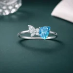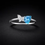 Designed with an asymmetrical layout, this ring features a blue stone paired with a floral cluster. Crafted from 925 sterling silver, it delivers a distinctive and artistic look. Perfect for those who prefer unique statement jewelry.