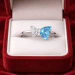 Designed with an asymmetrical layout, this ring features a blue stone paired with a floral cluster. Crafted from 925 sterling silver, it delivers a distinctive and artistic look. Perfect for those who prefer unique statement jewelry.