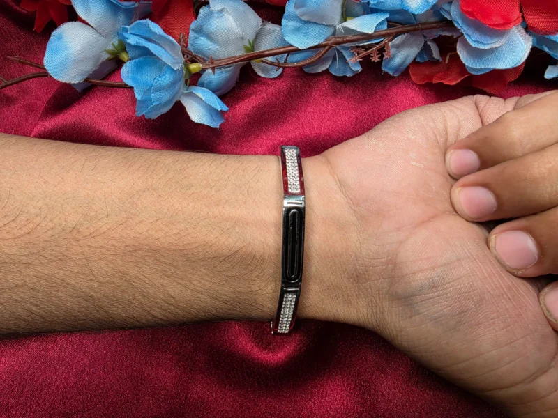 This bracelet is built for impact. The deep black center strip gives it a strong, dominant presence, while the red accents on the sides add just the right amount of aggression and style. It’s not subtle—and that’s the whole point.