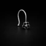 This flower-style nose pin adds a bit more character compared to basic designs without becoming flashy. The piece features a floral arrangement of black crystals with a small contrasting stone at the center, giving it a balanced and clean aesthetic.