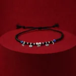 The contrast of black beads with silver charms gives it a premium yet rooted look. Practical. Emotional value. Easy gifting product.
