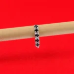 Make a bold yet elegant statement with this black stone hoop nose ring. Designed with a row of faceted black stones set in a sleek silver frame, this piece adds a modern and sophisticated touch to traditional nose jewelry.