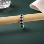 The continuous hoop design offers a secure and comfortable fit while giving a stylish, contemporary look. The deep black stones contrast beautifully with the polished silver finish, making this nose ring perfect for both casual styling and festive occasions.