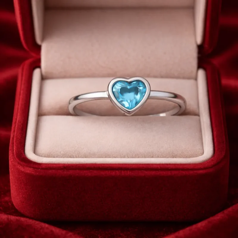 Featuring a blue heart-shaped stone, this ring is crafted from 925 sterling silver for durability and shine. Its youthful and elegant design makes it perfect for gifting or everyday wear. A charming blend of color and simplicity.