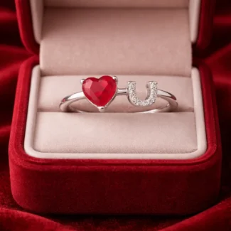 The Blush Heart Ring highlights a delicate heart-cut pink stone at its center, supported by a fine band with minimal detailing. The soft color and symbolic shape give it a romantic and youthful appeal.