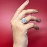 Because of its larger face size, this ring immediately draws attention to the hand. It’s not subtle, and it’s not meant to be. The slim band keeps the focus on the dramatic top without making the ring feel bulky.