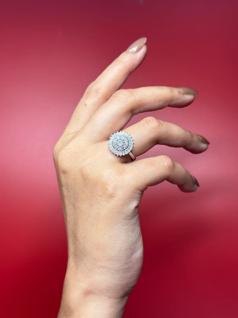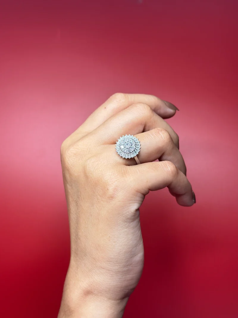 This piece is ideal for parties, weddings, festive events, and statement styling. Market it as a bold halo cocktail ring — not as an engagement ring. Different buyer, different expectation.