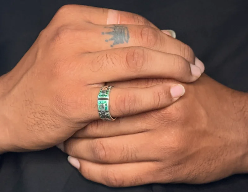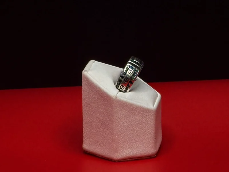The Cipher Code Silver Ring stands out with its engraved numeric-style detailing, giving it a bold and symbolic edge. Designed for those who prefer something different, this ring adds personality to your look without being overly flashy. Its polished finish highlights every detail, making it a strong everyday accessory that reflects individuality and style.