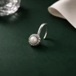 Add a touch of timeless elegance to your jewelry collection with this classic pearl silver nose pin. Designed with a beautiful round pearl set in a delicate twisted floral-style silver frame, this piece blends simplicity with traditional charm.