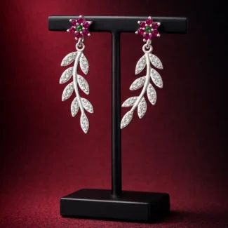 The combination of polished silver and rich red stone creates a striking contrast, making these earrings ideal for festive styling, Indo-western outfits, and evening wear.