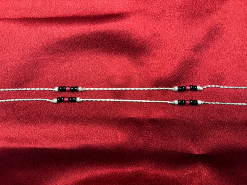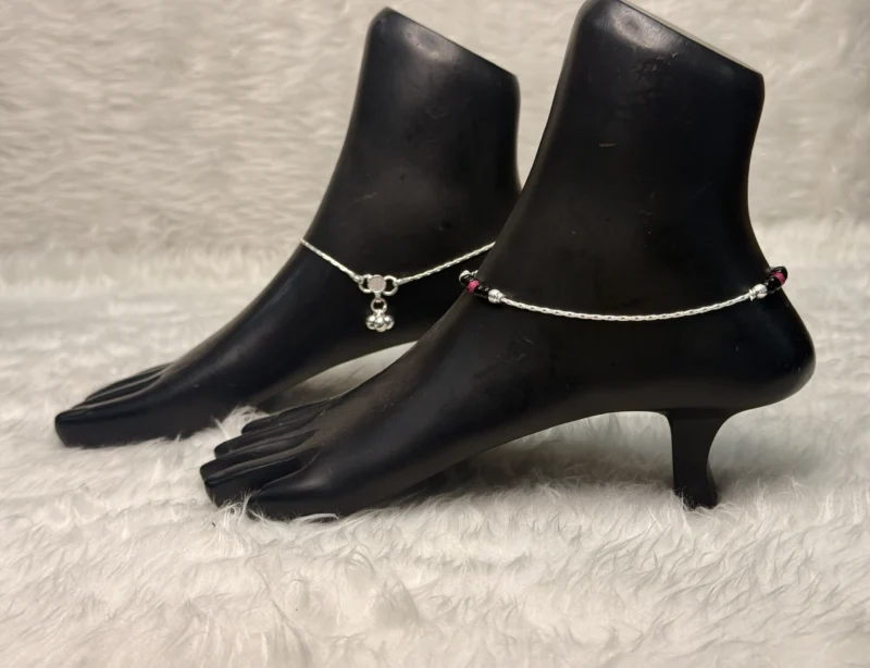 This anklet stands out a bit more than plain designs because of the black and pink bead combination, which adds contrast without making it loud. The layout is still minimal, but the dual-tone detailing gives it a slightly more styled look. The small charms add movement, but they don’t dominate the design. It’s a good middle-ground piece—not too basic, not too bold. Works well for everyday wear if someone wants a little variation from standard minimal anklets. If they’re expecting something premium-looking or heavy, this won’t match that expectation.