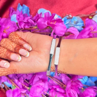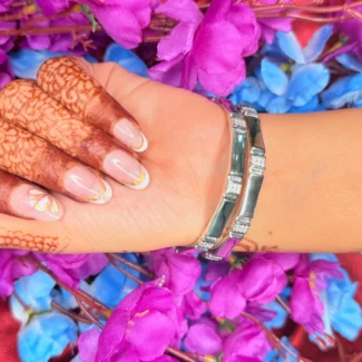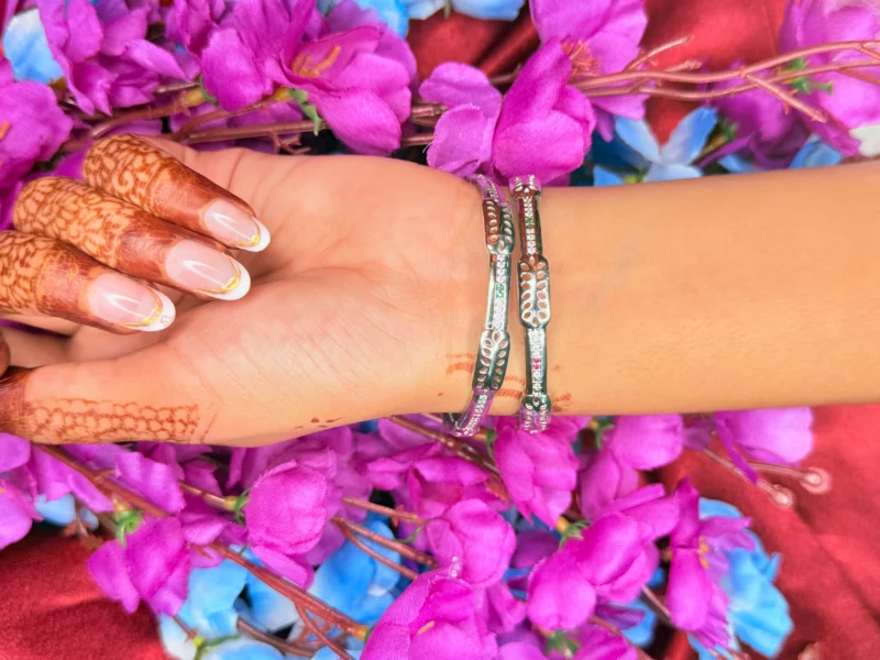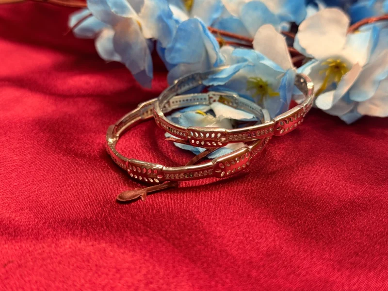 These elegant silver bangles are designed to add a subtle yet stylish touch to your everyday look. Featuring a modern cutwork design with dual-tone detailing, they strike the perfect balance between traditional charm and contemporary fashion. Lightweight and easy to wear, these bangles are ideal for daily use, festive occasions, or pairing with ethnic and western outfits alike. A versatile addition to any jewellery collection, they enhance your style without being overpowering.