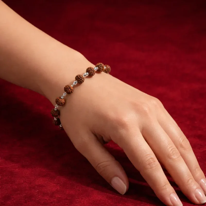 The smaller bead size makes it lightweight and easy to wear throughout the day, whether for devotional practice, meditation, or casual styling. The silver accents add a clean, premium touch without overpowering the natural texture of the rudraksha.