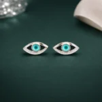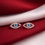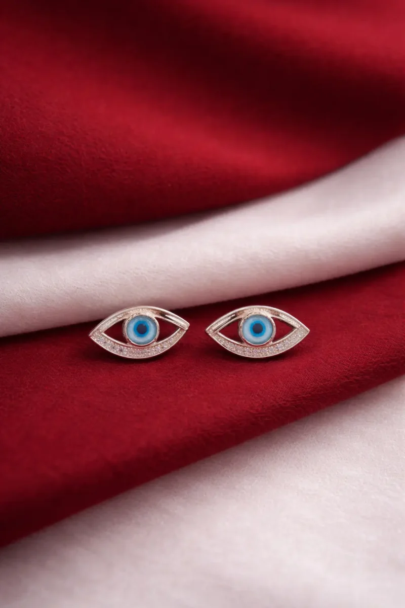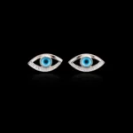 stands out with its structured double-frame detailing that adds depth and dimension to the iconic evil eye motif. The polished metal finish combined with the vivid blue center creates a strong, contemporary look. A distinctive piece for customers who want something more architectural.