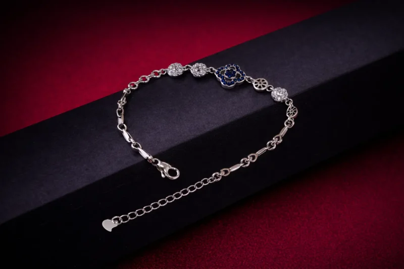•Blue centerpiece adds a subtle evil-eye inspired touch