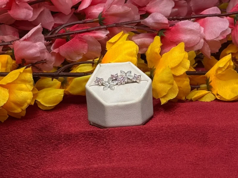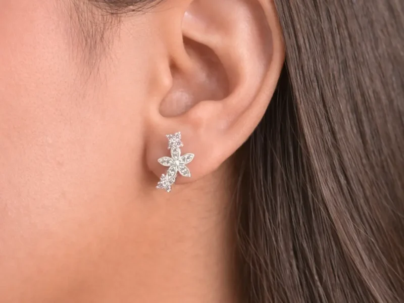 The top cluster anchors the piece, while the hanging floral shape adds flow. That slight drop makes it feel more premium than regular studs without becoming full danglers.
