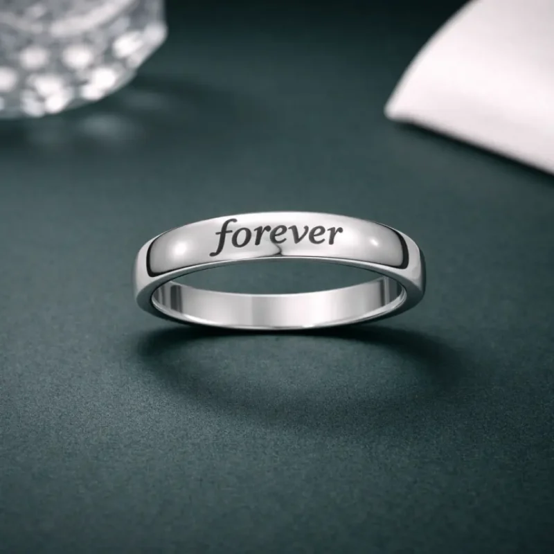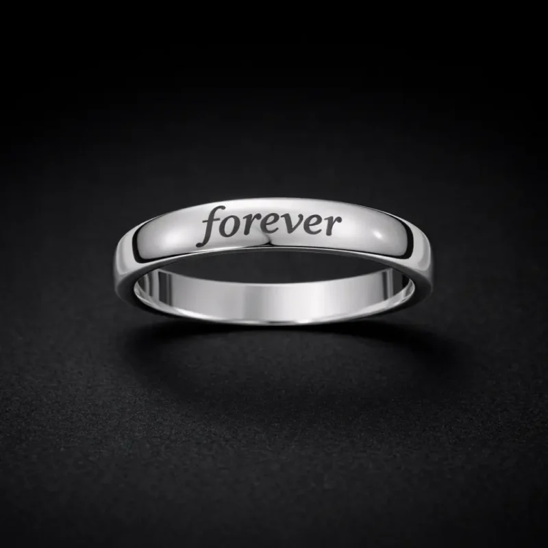 Crafted from 925 sterling silver, this band ring features “Forever” engraved with a clean finish. Ideal for symbolic gifting or daily wear, it offers simplicity with emotional meaning.