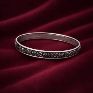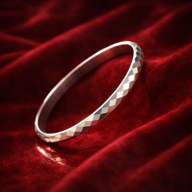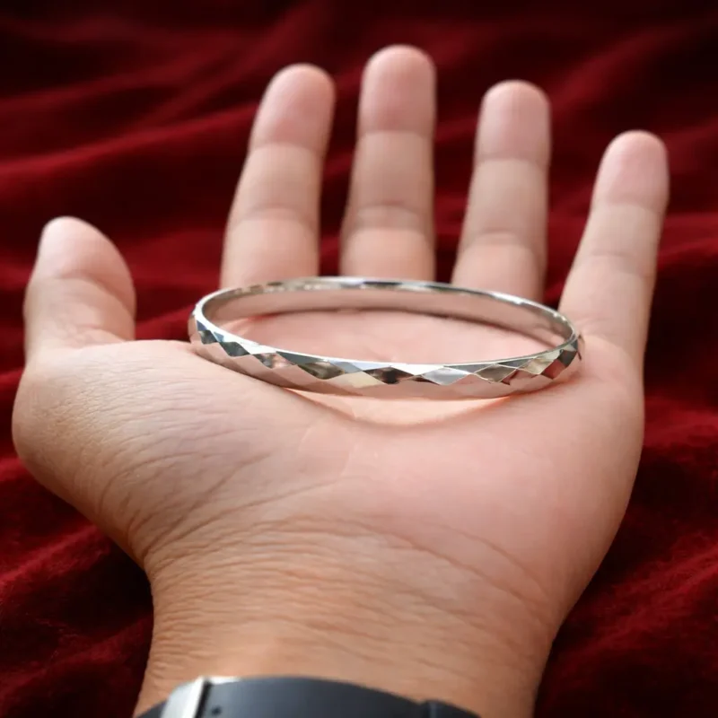The Full Diamond-Cut Silver Men’s Kada is designed for men who prefer subtle sophistication with a bold visual presence. Unlike plain or lightly engraved kadas, this piece features a complete faceted diamond-cut pattern across the outer surface, creating a striking reflective texture that catches light from multiple angles.