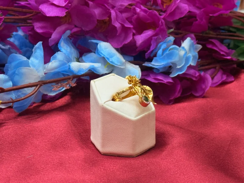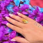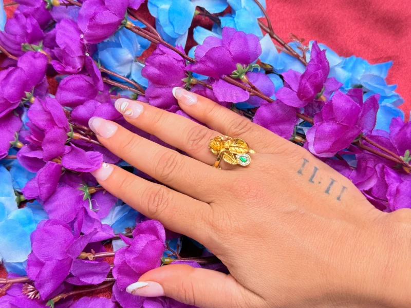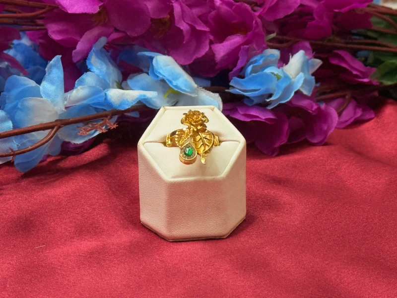 Gold Polish Leaf Floral Green Stone Designer Ring