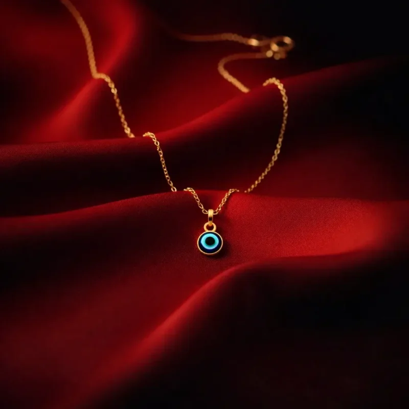 Tags: daily wear chain, evil eye necklace, gold pendant, minimalist necklace, nazar pendant, protection jewelry