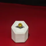 Make a bold statement with this eye-catching solitaire ring designed to stand out effortlessly. The centerpiece is a vibrant round-cut yellow stone that reflects light beautifully, creating a rich golden sparkle from every angle. Set in a secure prong setting, the stone remains the main focus while allowing maximum brilliance and shine.