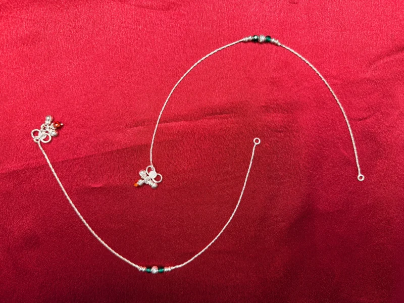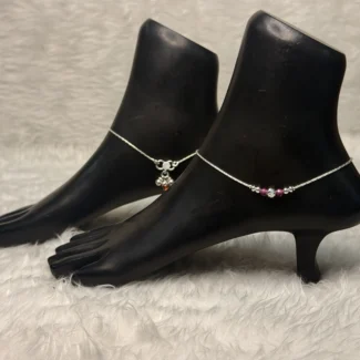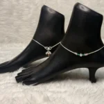 This anklet keeps things simple but adds just enough color to stand out. The thin silver chain is paired with green bead detailing, giving it a slightly more lively look compared to basic designs. The tiny charm drops add movement, but don’t expect anything bold—this is still a minimal piece. It’s designed for everyday wear, not for making a loud statement. If someone wants subtle elegance with a hint of color, this works. If they want heavy or eye-catching jewelry, this won’t satisfy them.