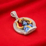 The outer ring is lined with small crystals, adding brilliance and elevating the overall look from simple devotional jewelry to a statement spiritual accessory. Suitable for festive wear, temple visits, gifting during Mahashivratri, or for devotees who prefer expressive and premium religious pendants.