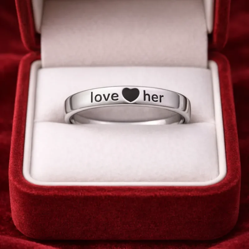 This silver band features “Love Her” engraved in a clean and readable style. Crafted from 925 sterling silver, it is suitable for gifting, promise wear, or everyday use.