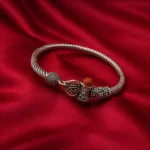 The Mahadev Damru Rudraksha Silver Kada is a spiritually inspired accessory crafted for devotees of Lord Shiva (Mahadev). Designed with a strong twisted silver band, this kada represents resilience and timeless style while carrying deep spiritual meaning.