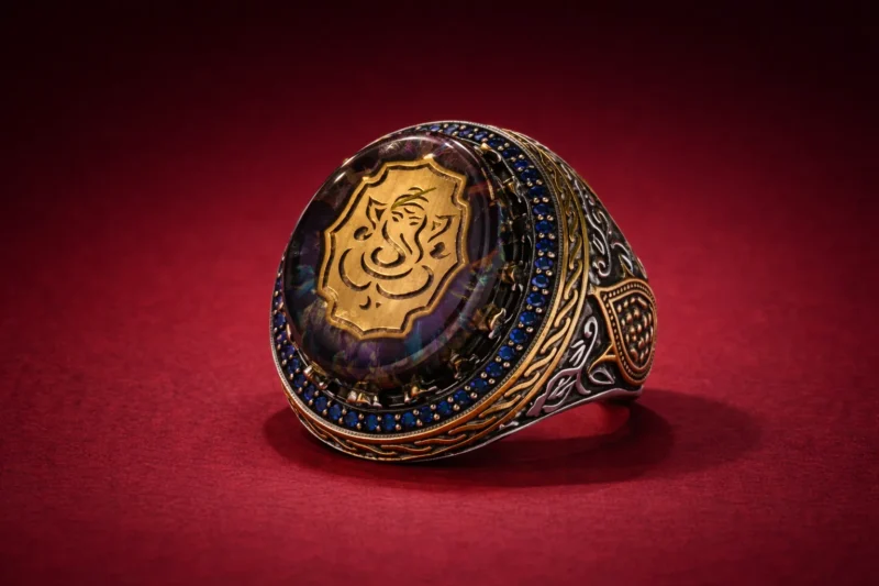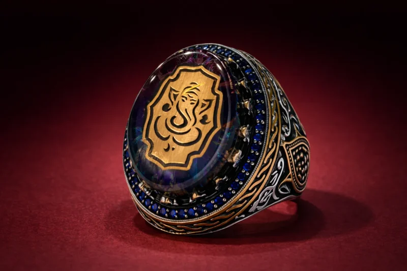 This ring targets customers looking for spiritual symbolism presented in a bold, high-impact design rather than a subtle devotional piece. It sits firmly in the statement-luxury category.