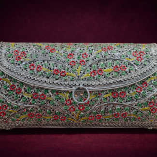 Tags: bridal clutch, designer wedding bag, ethnic handbag, festive purse, gold silver clutch, heavy bridal purse, Indian bridal accessory, kundan clutch, luxury clutch, peacock clutch, red green clutch, royal clutch, statement clutch, traditional clutch, wedding handbag