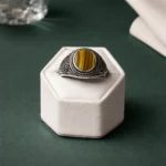 Crafted from 925 sterling silver, this statement ring features a striking oval Tiger Eye stone known for its deep golden-brown bands and natural chatoyancy (the subtle shifting light effect across the surface).