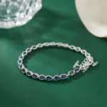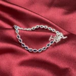Turn subtle style into a statement with the Midnight Teardrop Silver Bracelet. Designed with a sequence of finely set marquise-shaped deep blue stones, this piece blends minimal elegance with eye-catching detail.