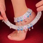 The Morni Pearl Drop Payal showcases intricate silver craftsmanship with colorful enamel elements in pink, blue, and green. The detailed motifs are finished with pearl-style drop charms that create graceful movement. It’s feminine without being subtle—ideal for mehendi functions, festive celebrations, or whenever you want your anklets to be the highlight instead of an afterthought.