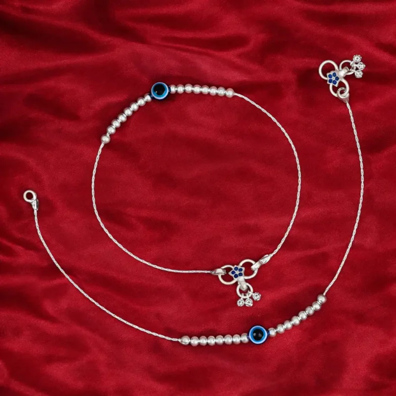 Nazar Charm Dual-Layer Silver Anklet – marvelsilver.com