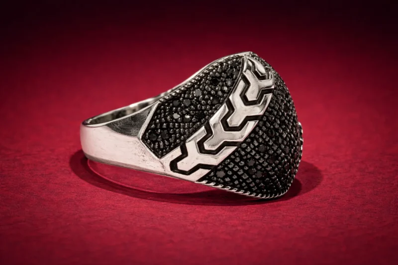 Obsidian Chevron Ring – Black Pavé Statement in Silver – marvelsilver.com