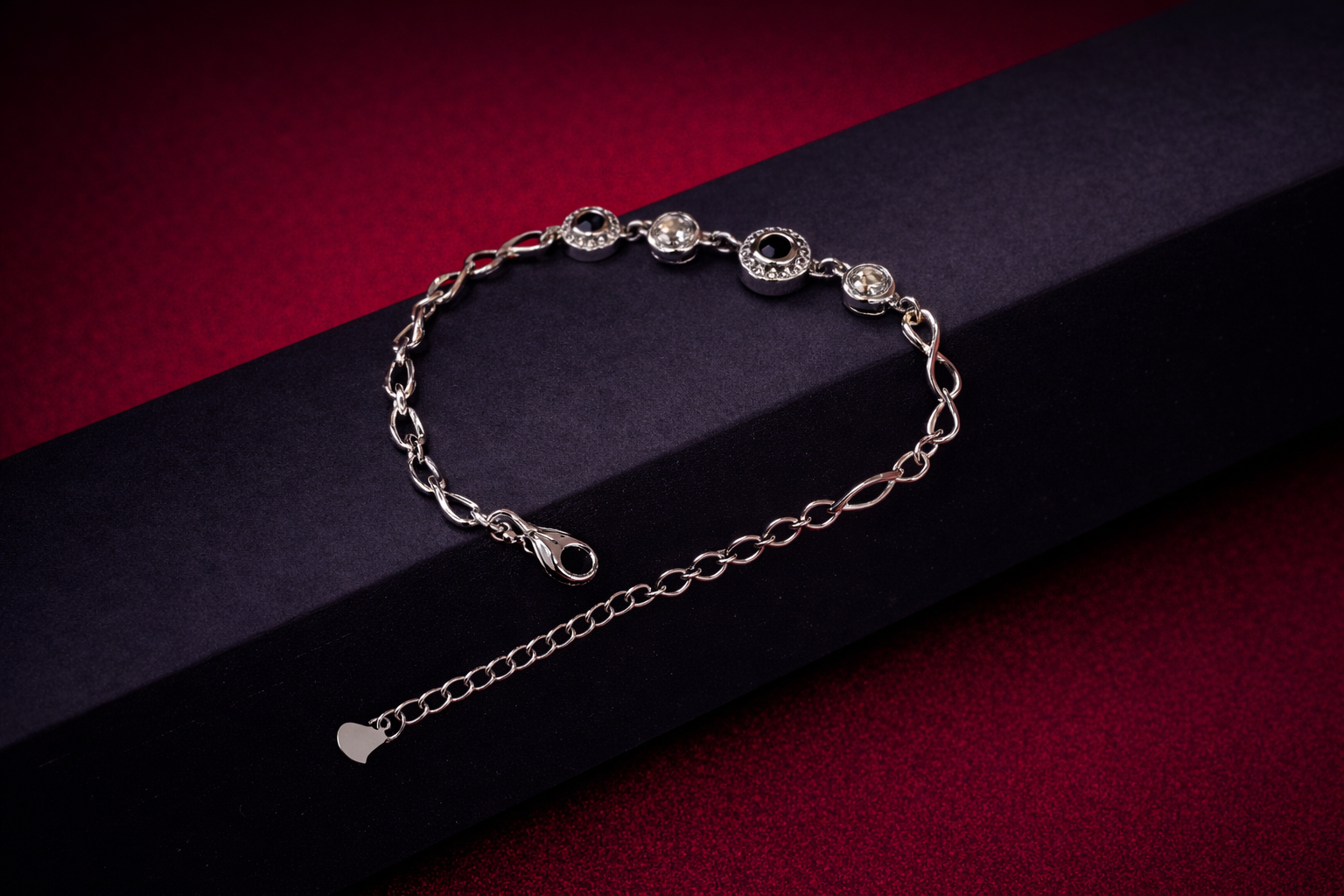 Modern bracelet with circular crystal charm.