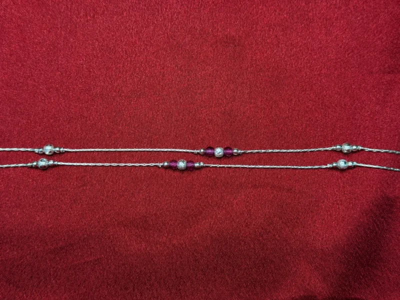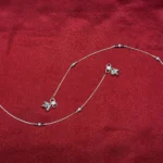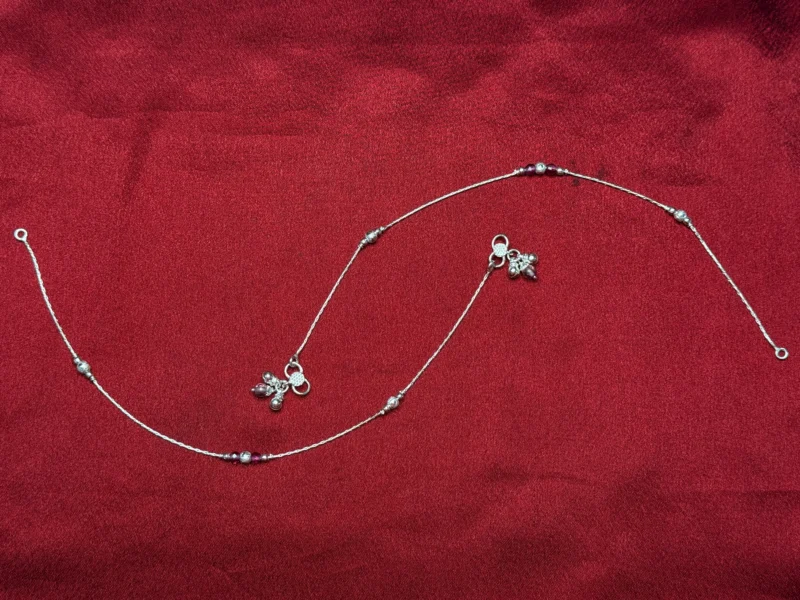 This anklet keeps things minimal but adds a soft feminine touch through its pink bead accents. The beads are placed evenly along the chain, giving it a clean and structured look without making it busy. The dual charm drops add a bit of movement and detail, but the overall design remains subtle. It’s designed for everyday wear—simple, lightweight, and easy to pair with different outfits. It won’t stand out from a distance, but up close it looks refined and well-balanced. If someone wants bold or statement jewelry, this won’t meet that expectation.