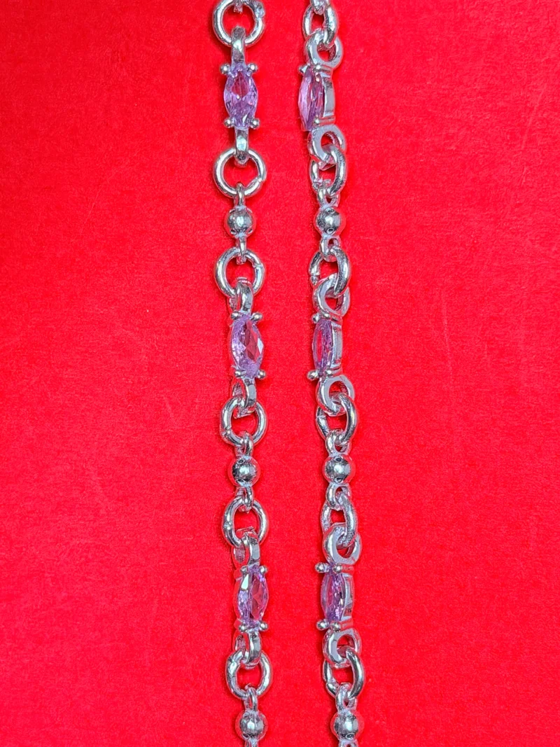 Pink Crystal Chain Silver Anklet – marvelsilver.com