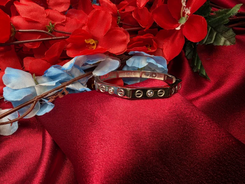 The screw-pattern detailing adds an industrial, high-end vibe (inspired by luxury watch and bracelet designs), while the small studded elements break the monotony and give it depth. It’s a calculated design—not random decoration.