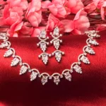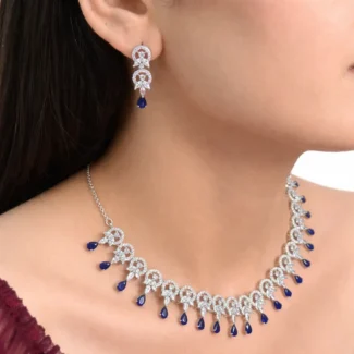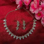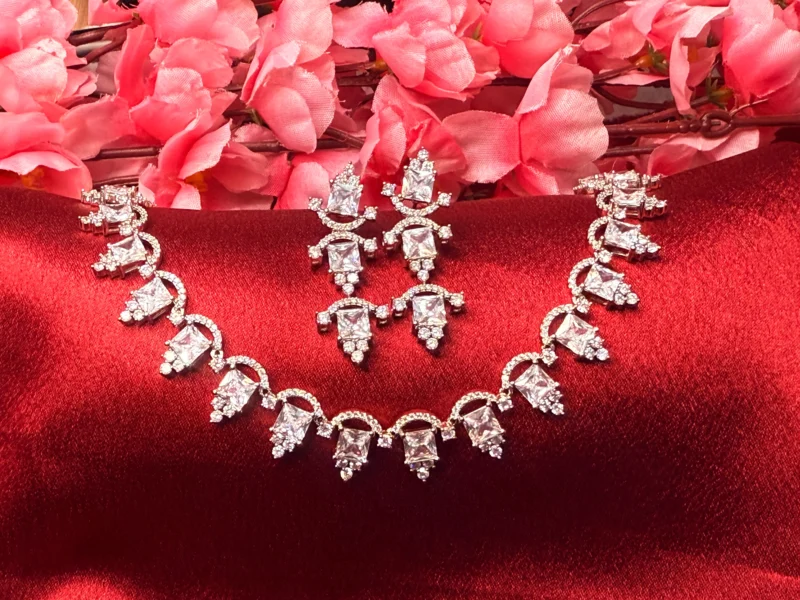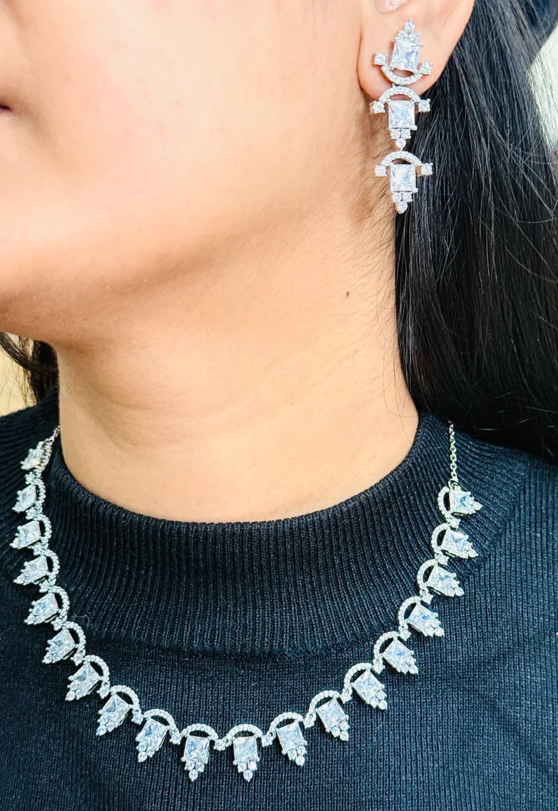 Make a graceful statement with this exquisite Regal Drop Crystal Necklace Set, crafted to bring out timeless elegance. The necklace features a beautiful sequence of curved links adorned with sparkling teardrop crystals, creating a flowing and luxurious design that sits perfectly on the neckline. Each element reflects light brilliantly, adding a subtle shimmer to your overall look. Paired with matching elongated earrings, this set enhances both traditional and modern outfits effortlessly. Ideal for weddings, festive occasions, and evening events, it offers the perfect balance of sophistication and comfort.
