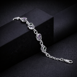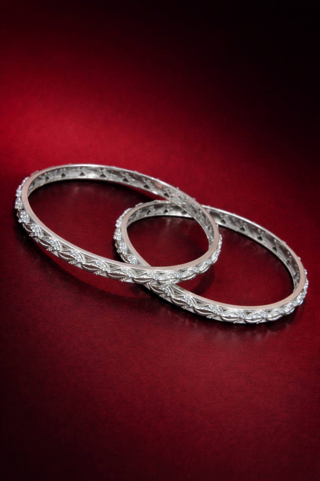 Intricately carved silver bangles featuring a flowing vine-inspired pattern with subtle stone accents for a refined traditional look.