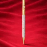 This premium pen set is designed for a refined and professional presence. The upper body features a polished gold finish accented with a centered crystal detail, adding a subtle touch of sophistication without being overly decorative. The lower barrel comes in a finely textured silver pattern, enhancing grip while maintaining a luxurious look.