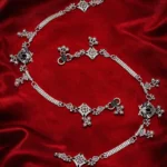 Add a regal touch to your jewelry collection with this royal square motif silver anklet. The design features a beautifully crafted chain adorned with decorative square-shaped stone motifs, giving the anklet a bold and distinctive appearance.