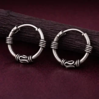 Crafted with a sleek curved profile, the earrings maintain a minimal yet powerful look that works effortlessly with both traditional and modern outfits. The polished silver surface reflects light beautifully, enhancing the richness of the design.