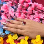 The deep ruby red center stone instantly pulls focus. It’s bold, rich, and high-contrast—making it far more eye-catching than the white or pink variants. This is the kind of piece that stands out even in fast-scrolling reels.